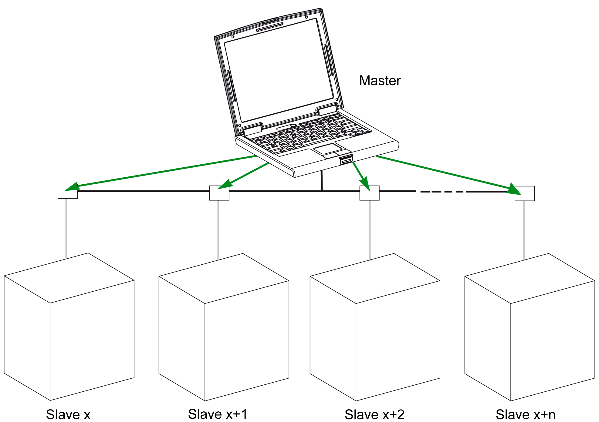 The master can address each slave individually using its specific address or all slaves simultaneously using address 0.