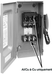 Les interrupteurs à fusible 30–200 A 600 V sont conçus pour l’installation de fusibles de classe H et R. Le déplacement du bloc fusible côté charge est nécessaire.