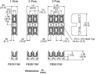 Power Block Mounting Hole Diameter Measurements in. (mm)