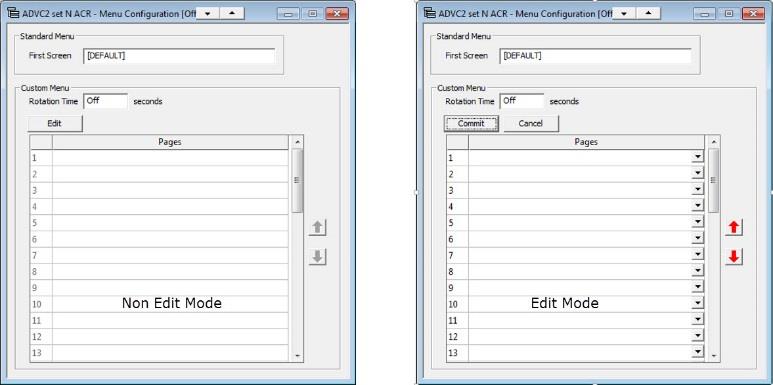 When the required custom menu pages are displayed, press Commit to make them active and return to the non-edit display.