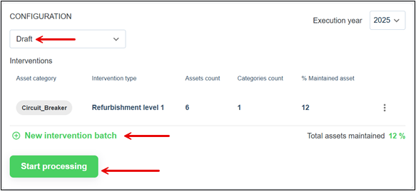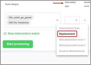 To see the list of Asset Categories, click New intervention batch.