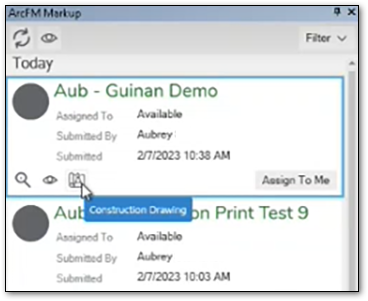 - In ArcFM’s Markup toolbar, if a design print is attached to a markup, then the Construction Drawing button is available.
