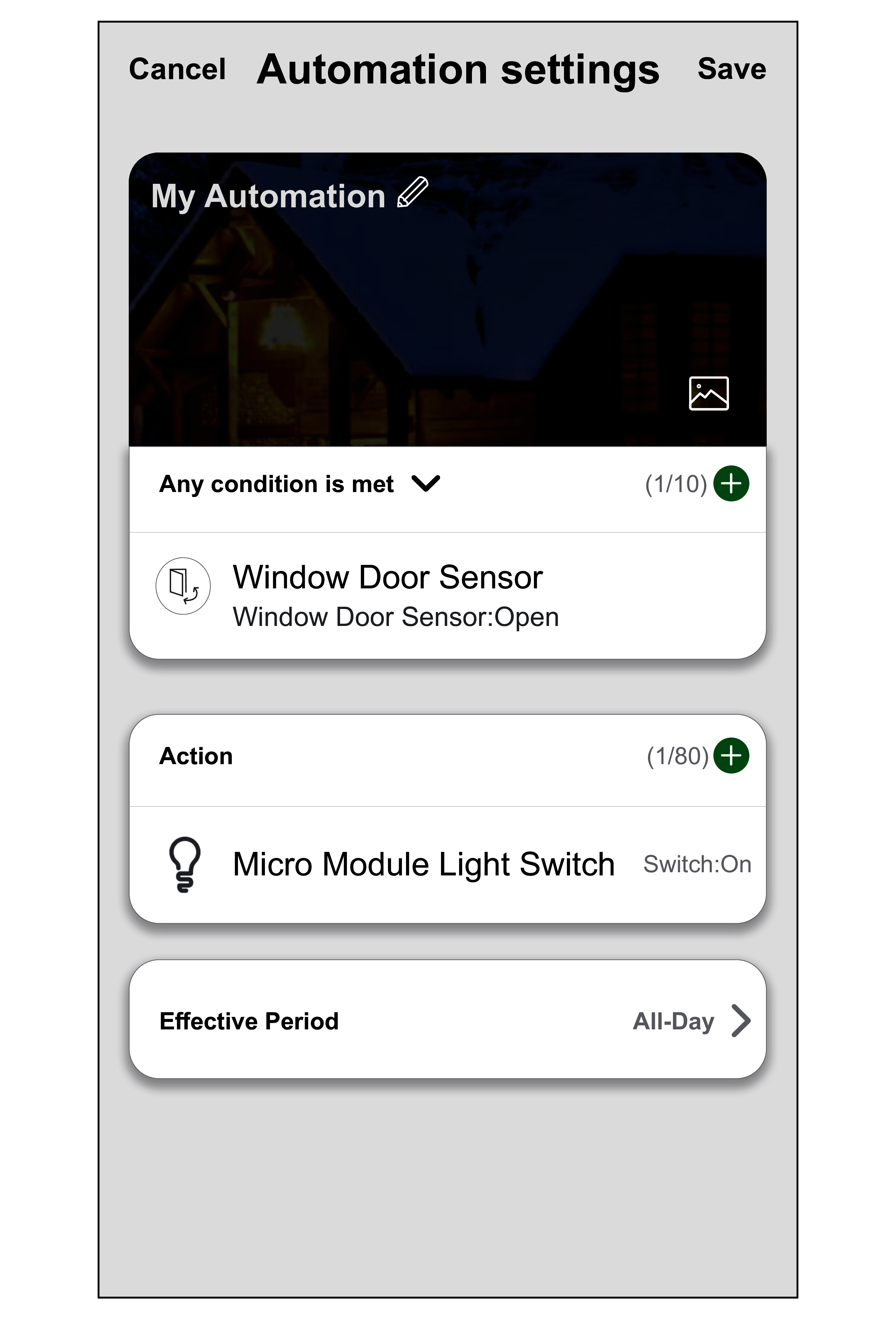 3. Tap Add Condition > When device status changes > Window/Door Sensor.