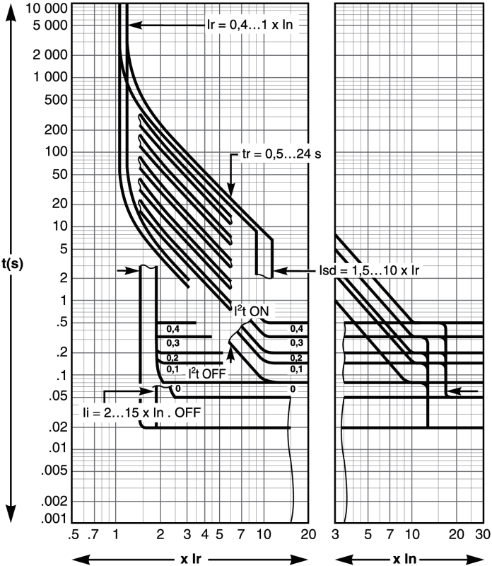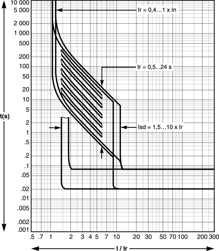 Protección de largo retardo, corto retardo e instantánea (MicroLogic  5.0A/E, 6.0 A/E y 7.0 A)