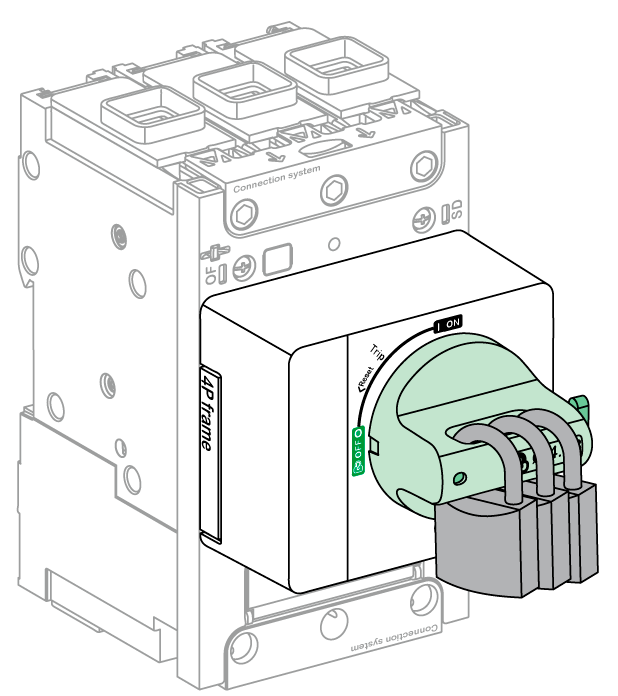 Para bloquear el mando en la posición I (ON), es necesario desmontar el bloque del mando rotativo y cambiar la configuración física del mando. Normalmente, este procedimiento se realiza durante la instalación. Consulte la hoja de instrucciones correspondiente para obtener información acerca de cómo configurar el mando para bloquearlo en la posición I (ON).