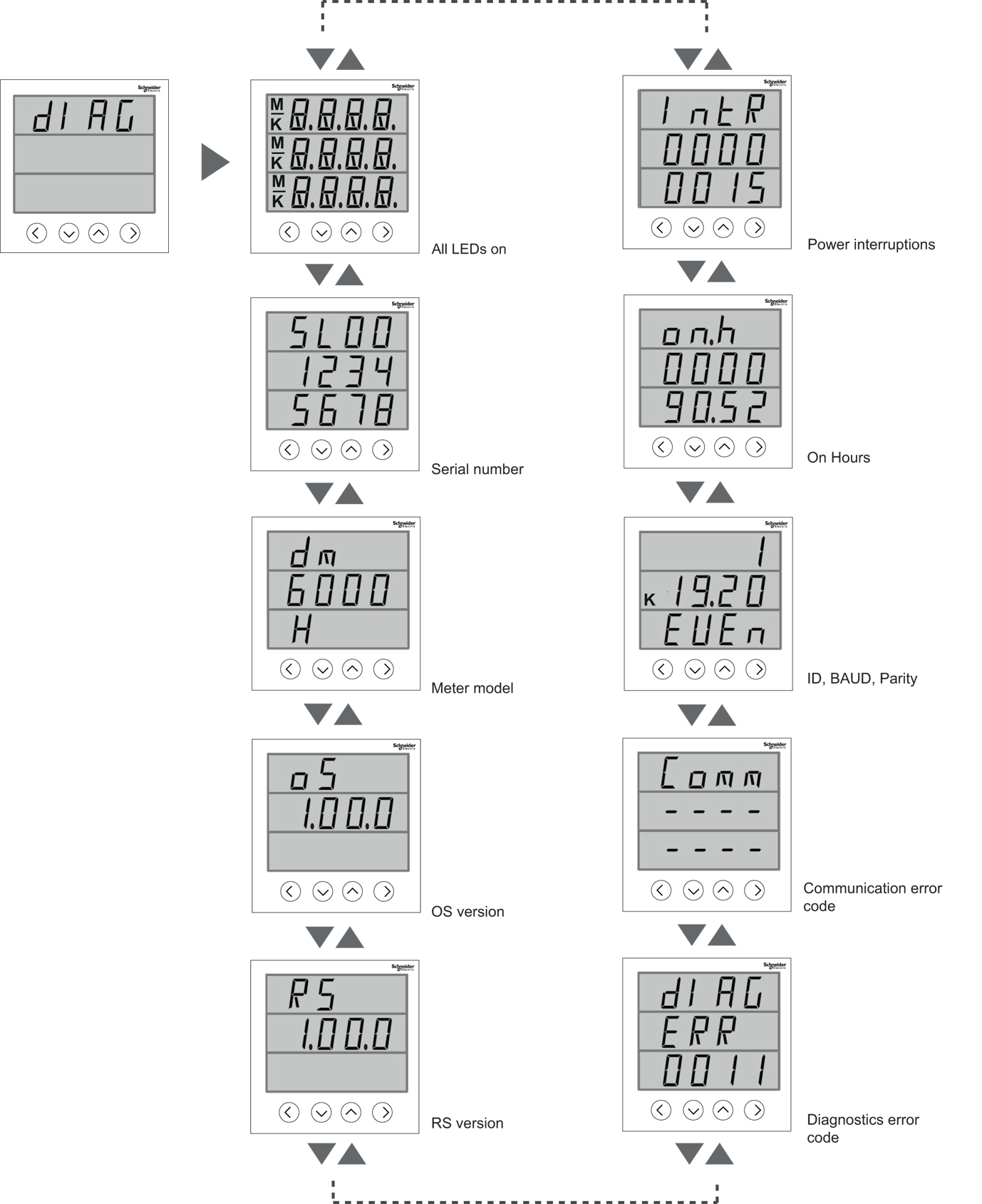 3. Pulse las teclas Arriba o Abajo para desplazarse hasta el siguiente parámetro de Diag.