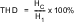 THD% is a quick measure of the total distortion present in a waveform and is the ratio of harmonic content (HC) to the fundamental harmonic (H1).