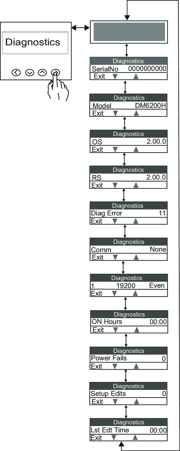 5. Press the Up or Down button to navigate to the next Diagnostics parameter.