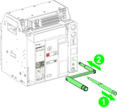 When the test position is reached, the position release button pops out and the mechanism blocks the racking handle.