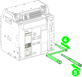 Connection or disconnection of the drawout device requires insertion of the racking handle. When chassis locking by keylocks, padlocks, or an open door lock are in place, the racking handle cannot be inserted.