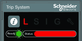 Ready LED: blinking green Status bar: red on Service LED: off L trip cause LED: red on Other trip cause LEDs: off |