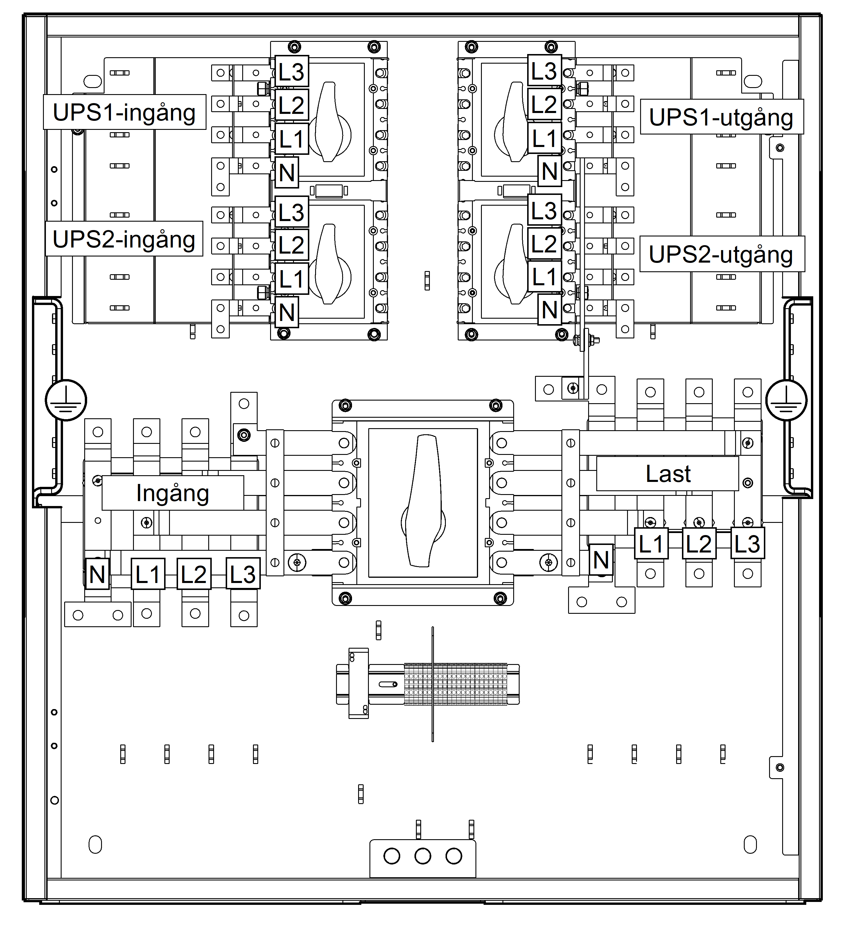 UPS-utgångsskena och lastskena innan du fortsätter.