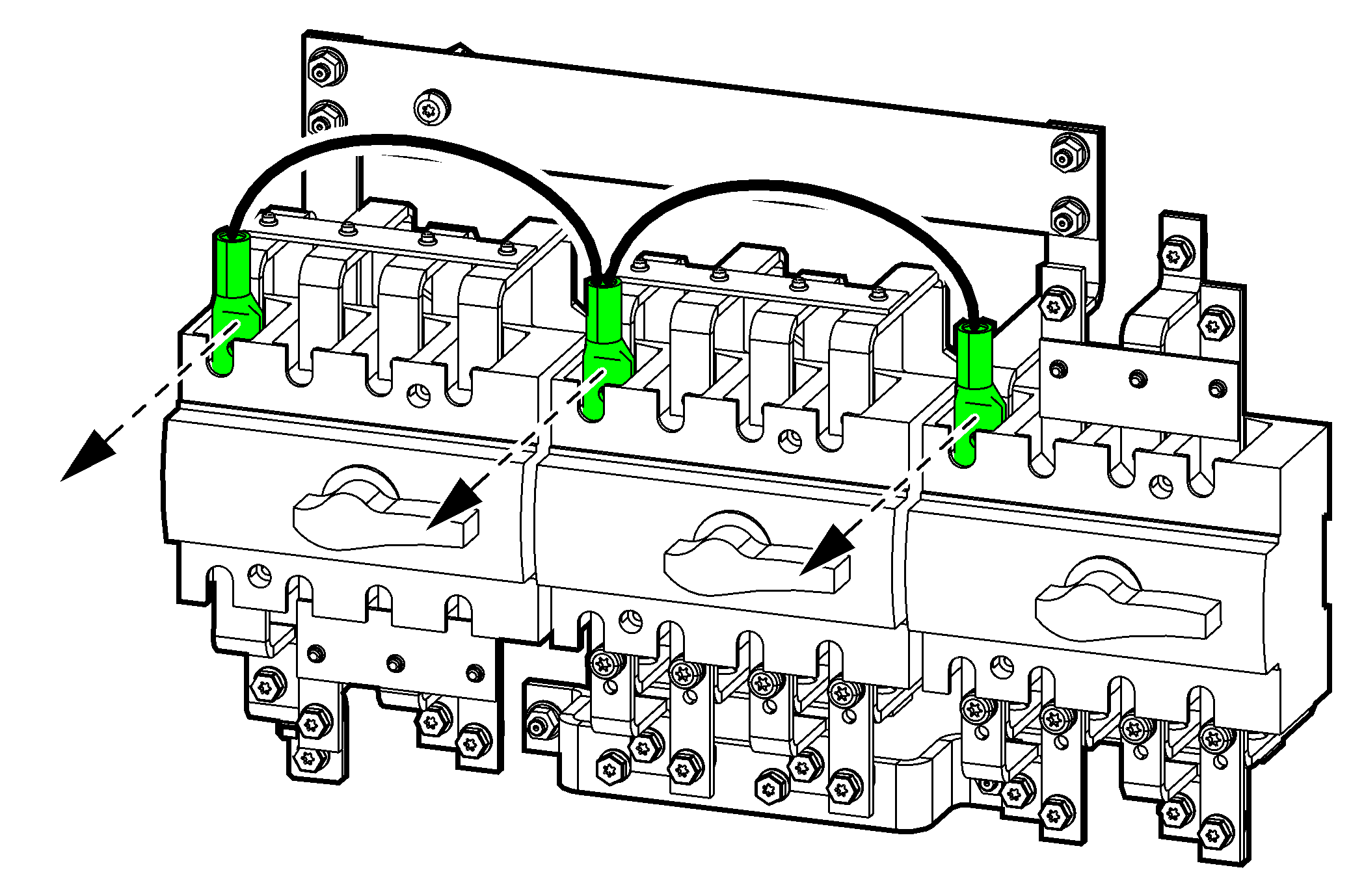 NOTA: El puente del neutro hace una conexión con perno en el neutro para que no se desconecte al abrir el disyuntor de cuatro polos. Retire los puentes del neutro únicamente si es un requisito local.