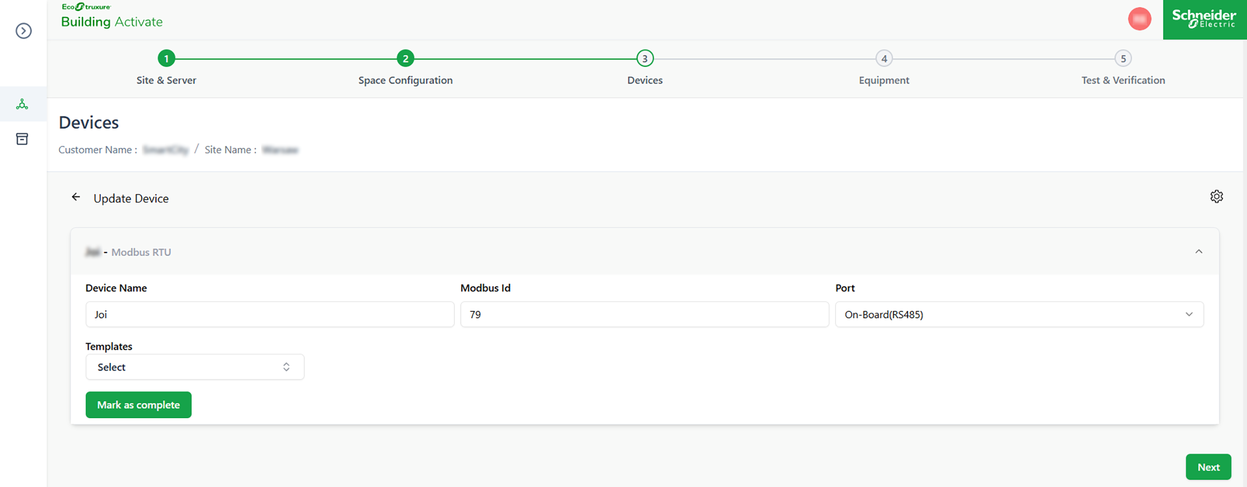 5. Enter the Modbus ID of the device.
