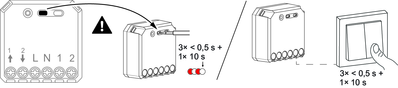 Short press the push button 3 times and then long press the push button once for 10 s.