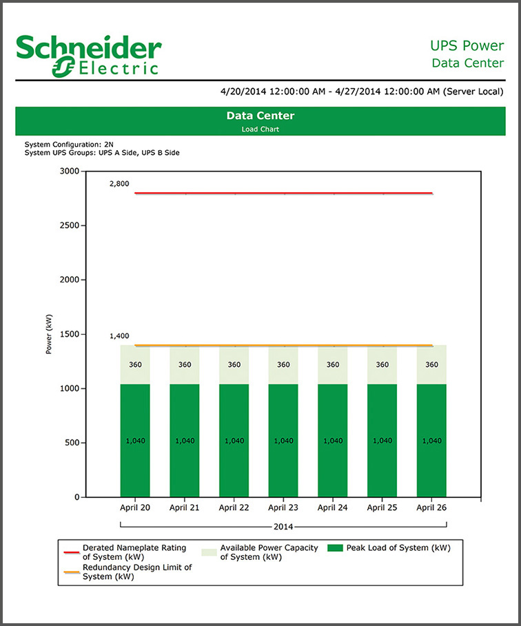 Monitors the capacity of branch circuits. Use this report to analyze IT branch circuit power loading and to understand remaining capacity at the branch circuit level (primarily for data center applications). Specific measurements required are Active Power (kW) and Current (A).