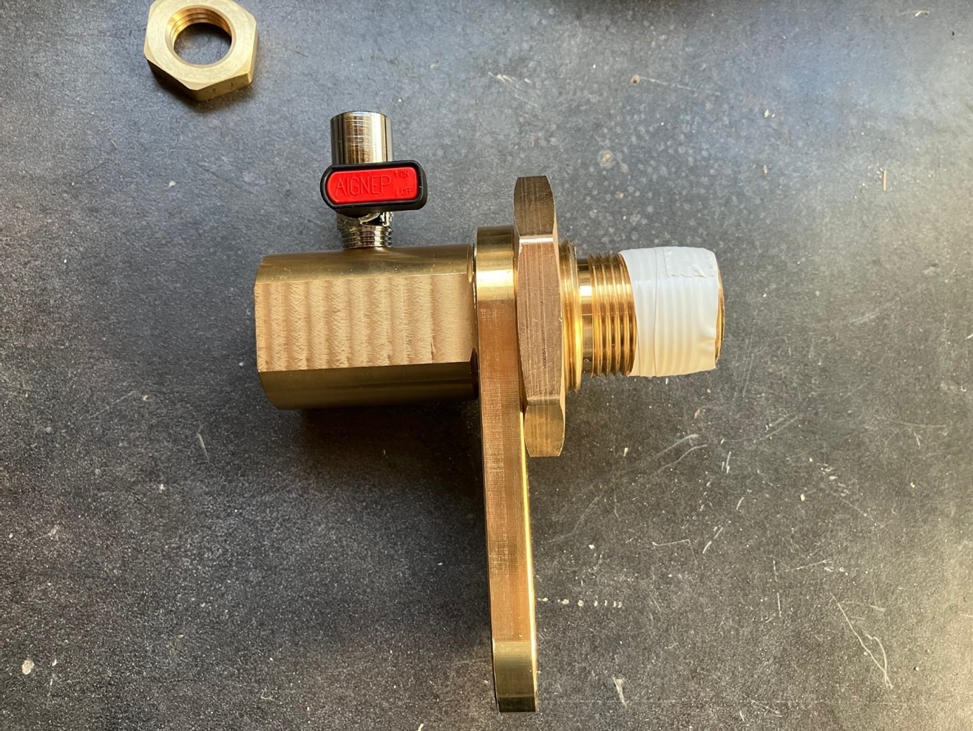 Using PTFE tape, screw the ETE adapter (1 inch BSPP plug) into the socket thread on the oil valve or onto the NPT/BSPP adapter that you assembled in the previous step.