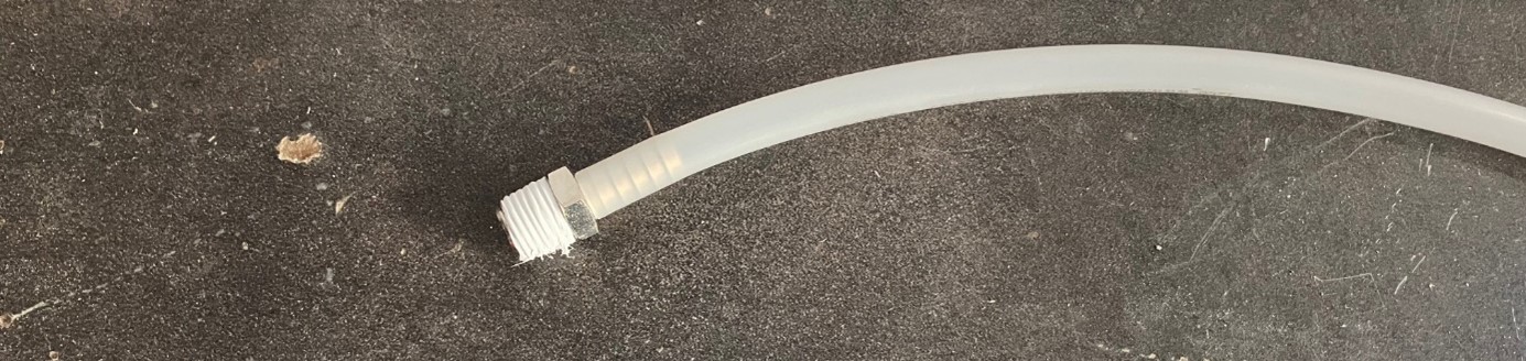 Remove the cap from the barb and wrap the plug thread with PTFE tape.