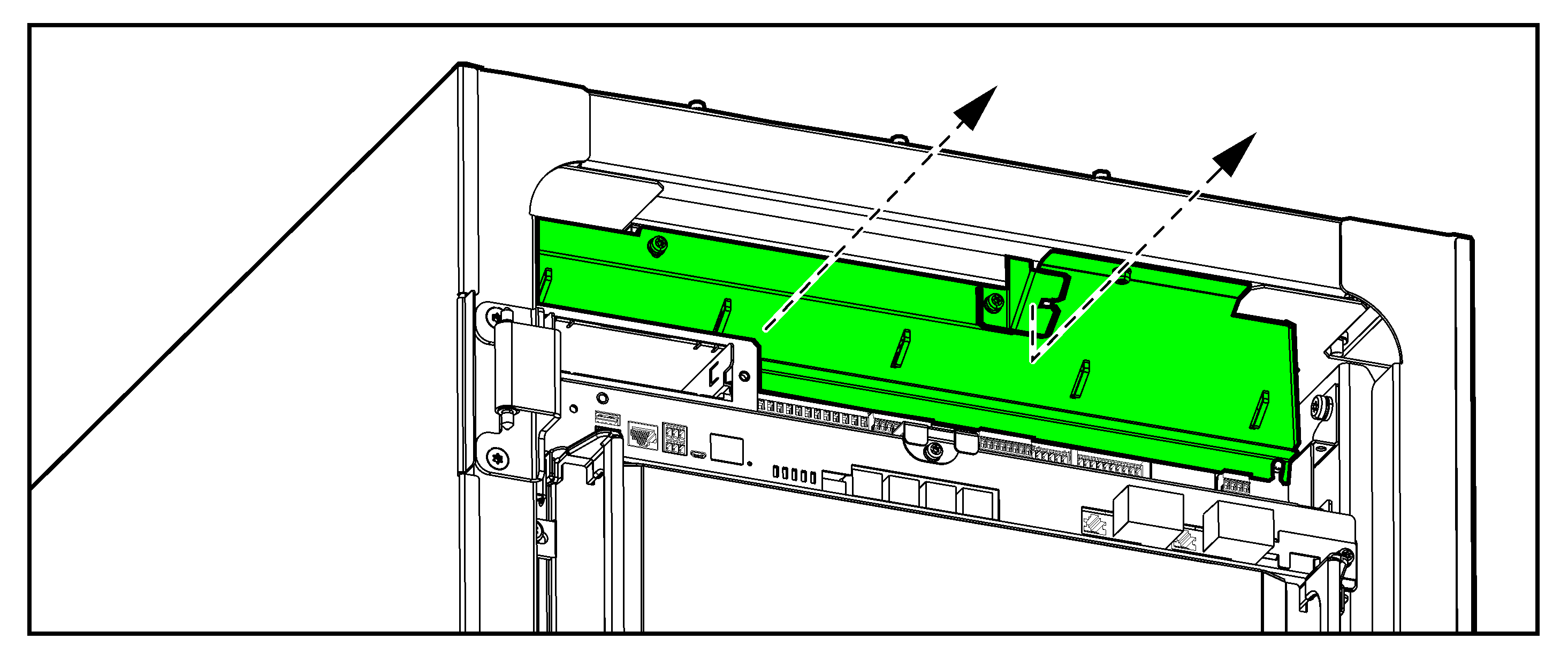 - Remove the top gland plates and the top brush plates from the UPS. These are for signal cable routing.