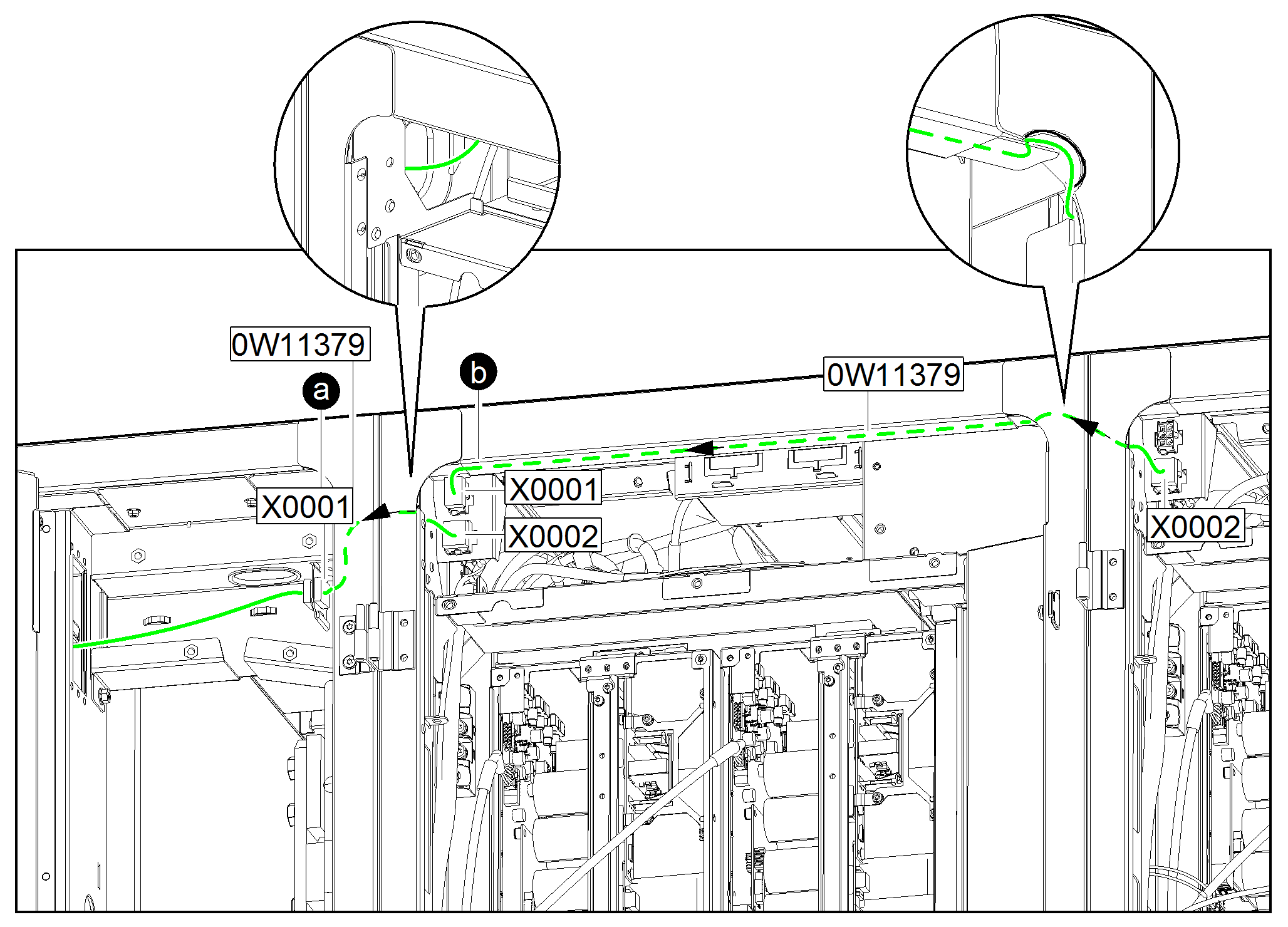 2. İkinci güç kabininde bulunan X0002'deki sinyal kablosu 0W11379'u en soldaki güç kabinindeki X0001'e bağlayın.