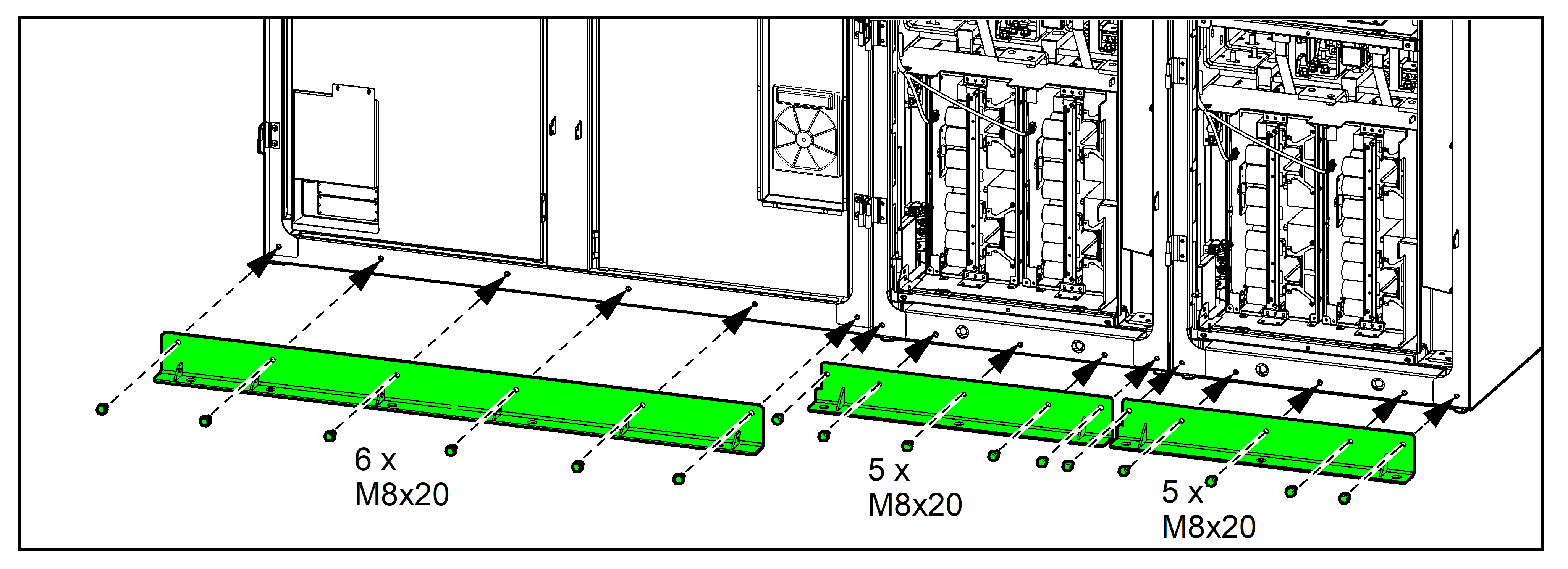 1. Ασφαλίστε το μπροστινό άγκιστρο αγκύρωσης στο μπροστινό μέρος των ερμαρίων χρησιμοποιώντας τους κοχλίες που παρέχονται.