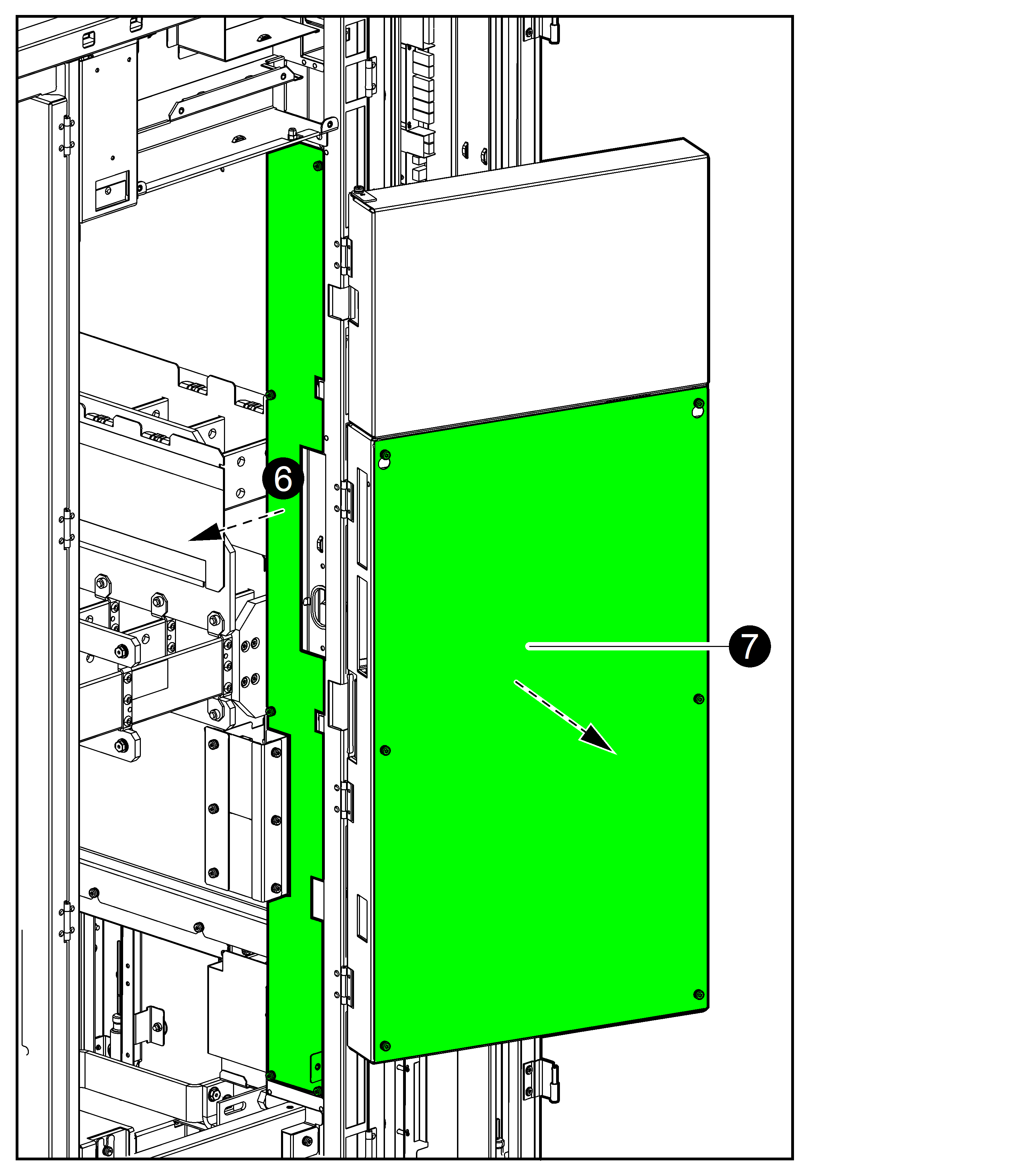 3. Remova as três placas indicadas dos gabinetes de energia.