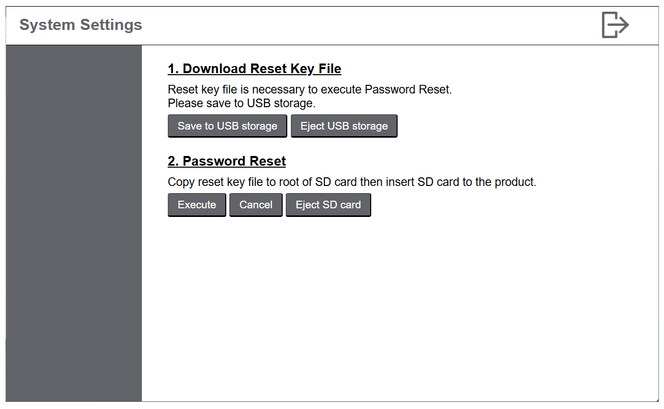 Wenn Sie das Administratorpasswort vergessen, während Password Reset on Login Screen deaktiviert ist, ist es nicht möglich, das Passwort zurückzusetzen oder Daten im Produkt wiederherzustellen.