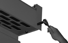- Attach the aisle section to the switchgear by bolting each bay’s aisle roof support bracket to the front of the switchgear and by bolting the aisle roof to the switchgear roof, using the supplied 3/8-16 x 1.0 inch bolts (Anchoring Aisle Roof Support Bracket to Switchgear).