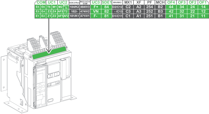 En la siguiente tabla se describe la asignación y la disponibilidad de los borneros para interruptores automáticos fijos: