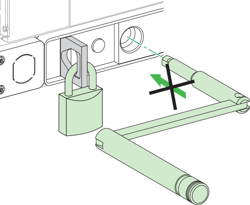 抽架可以锁定在退出位置。当抽架锁定在退出位置时,摇进摇出手柄无法插入。