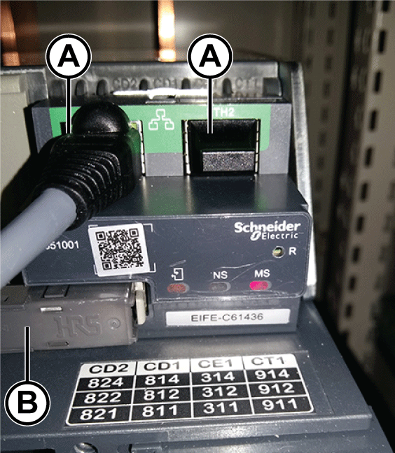 Réinstaller l'interface EIFE. Consulter le document Enerlin'X EIFE - Interface Ethernet intégrée pour un disjoncteur MasterPacT MTZ débrochable - Instruction de service. |
