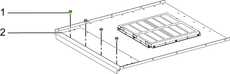 Remove the four M6 x 16 bolts (1) from the IP grid (2) to mount the fan on top equipped plate on the IP grid.