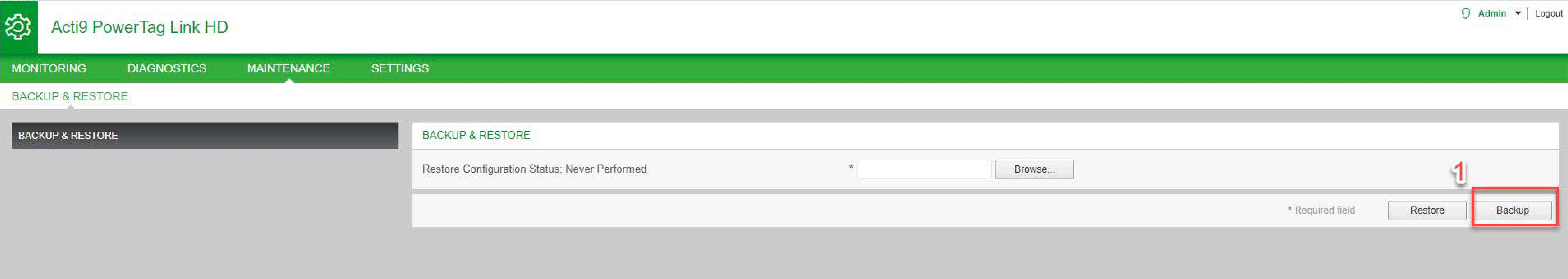 Una vez finalizada la puesta en marcha, se recomienda encarecidamente realizar una copia de seguridad de la configuración. En ella se guardará información obligatoria en caso de sustitución de la pasarela PowerTag Link.
