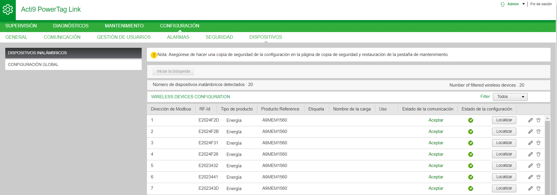 Configure los dispositivos inalámbricos. Consulte Configuración de dispositivos inalámbricos con las páginas web. NOTA: La dirección Modbus asignada a los dispositivos