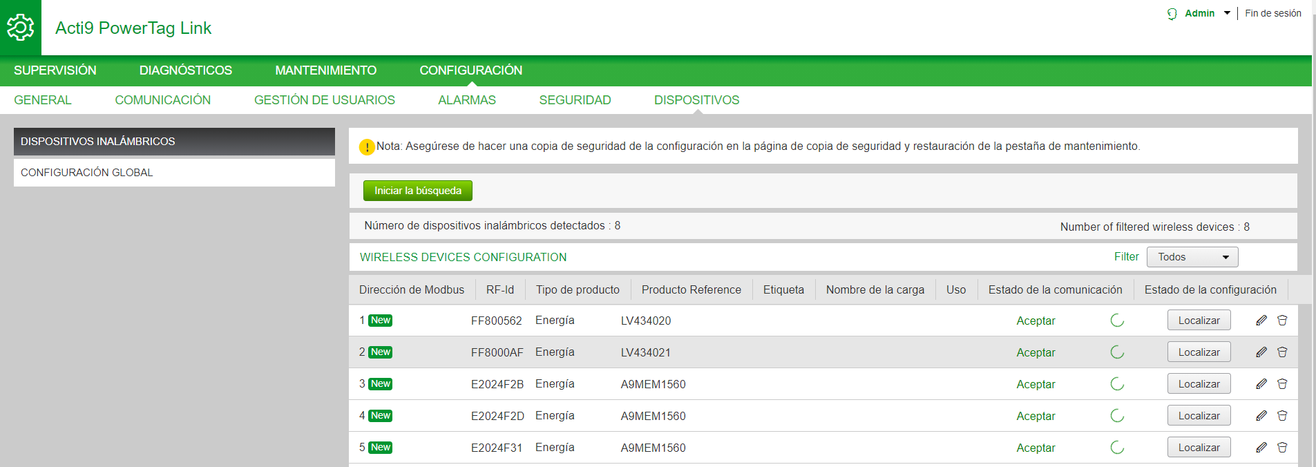 Configure los dispositivos inalámbricos. Consulte Configuración de dispositivos inalámbricos con las páginas web. NOTA: La dirección Modbus asignada a los dispositivos inalámbricos