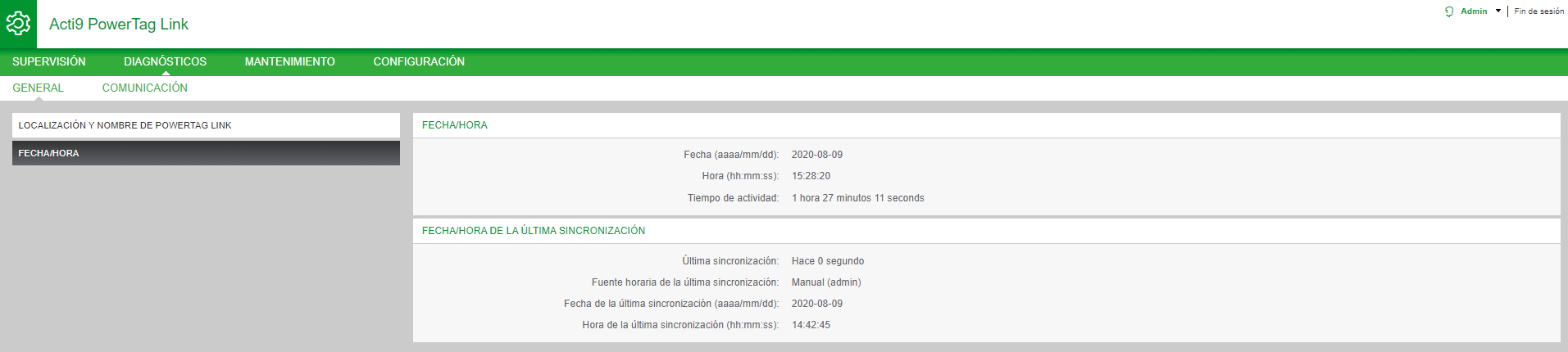 La página Fecha/Hora muestra la siguiente información: