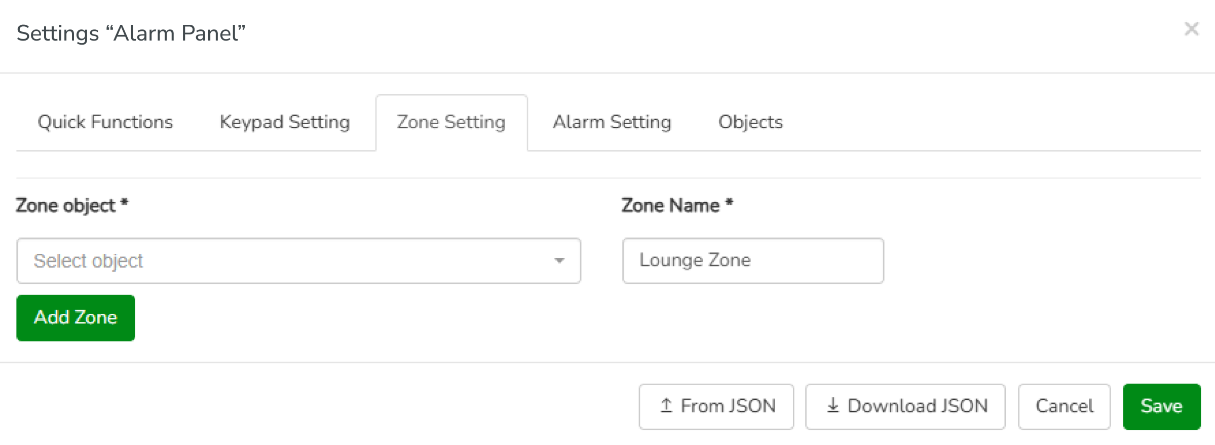 Click Alarm Panel on the slide menu to open the Settings “Alarm Panel” window.