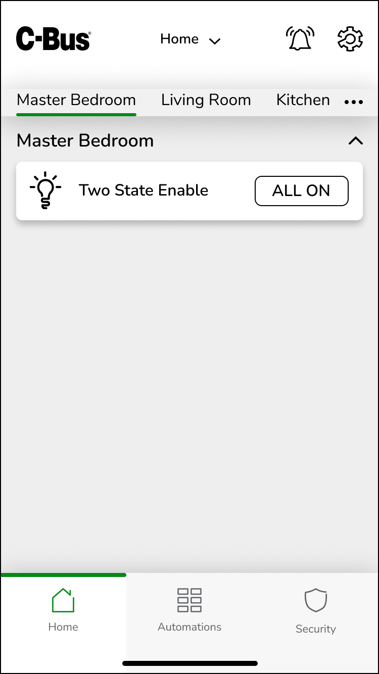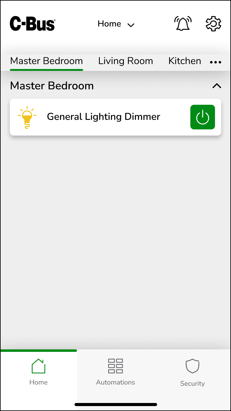 On the Home screen, tap the room in which you want to control the General Lighting Dimmer.