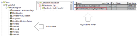 • Ist der azyklische Datenpuffer im Abschnitt „Controller-Tags“ sichtbar