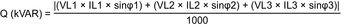 • Puissance réactive : Q (kVAR) = |(VL1 x IL1 x sin φ)|