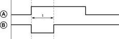 I parametri Tipo attivo, Tipo uscita e Tempo impulso (t) definiscono la modalità di elaborazione delle informazioni di uscita (A) da parte di LTMT main unit e viene convertito nelle informazioni fisiche trasmesse dall'uscita relè (B).