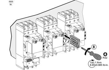 注: 不需要调整不同尺寸的星形和三角形接触器之间的机械联锁 LA9G971 和 LA9G972。 -
