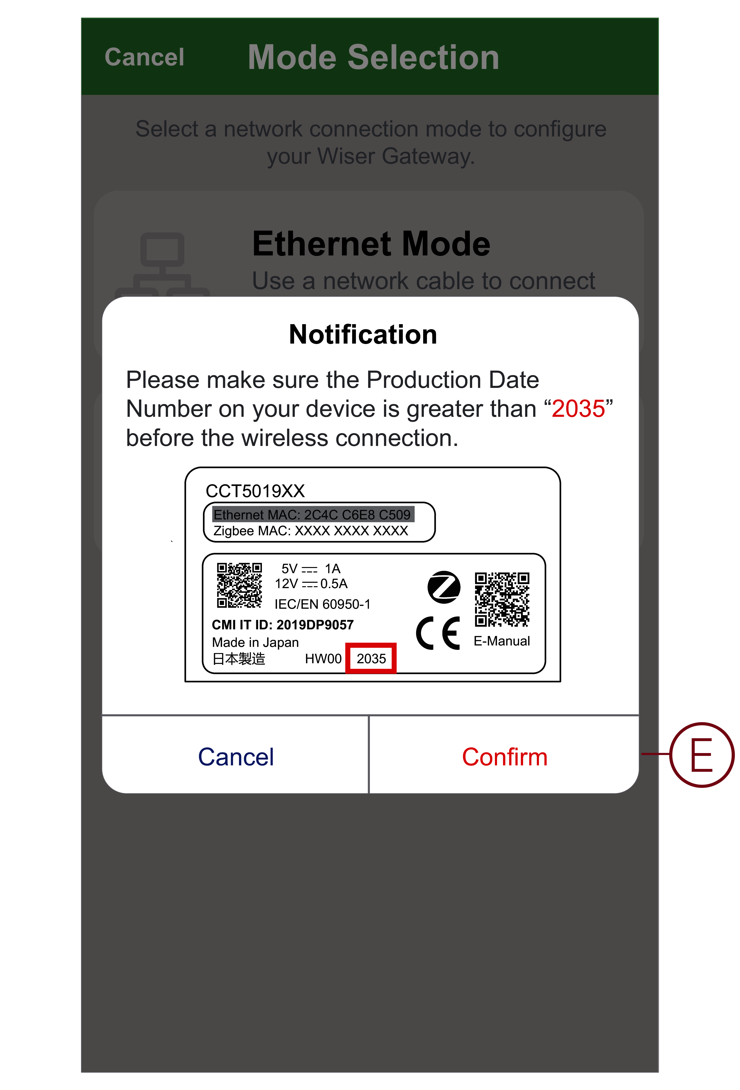 5. Tap Confirm when you receive the Notification (E).