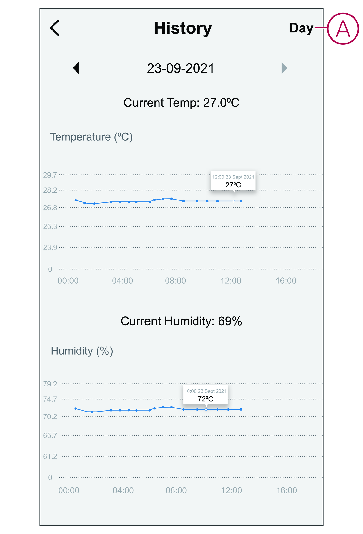3. In the History page, you can see the temperature and humidity changes in the graph.