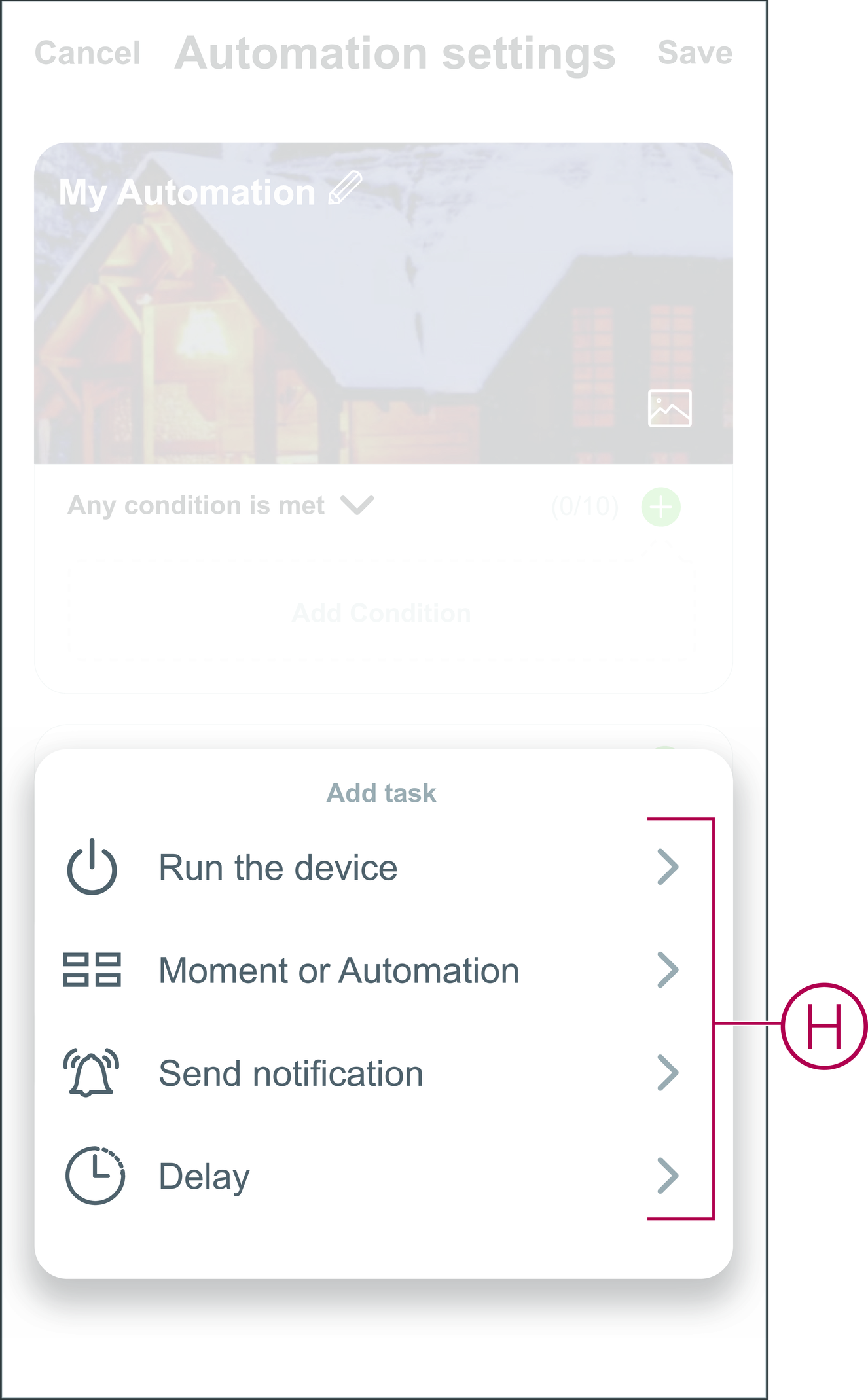 • Moment or Automation - Select the moment which you want to trigger or select the automation that you want to enable or disable.