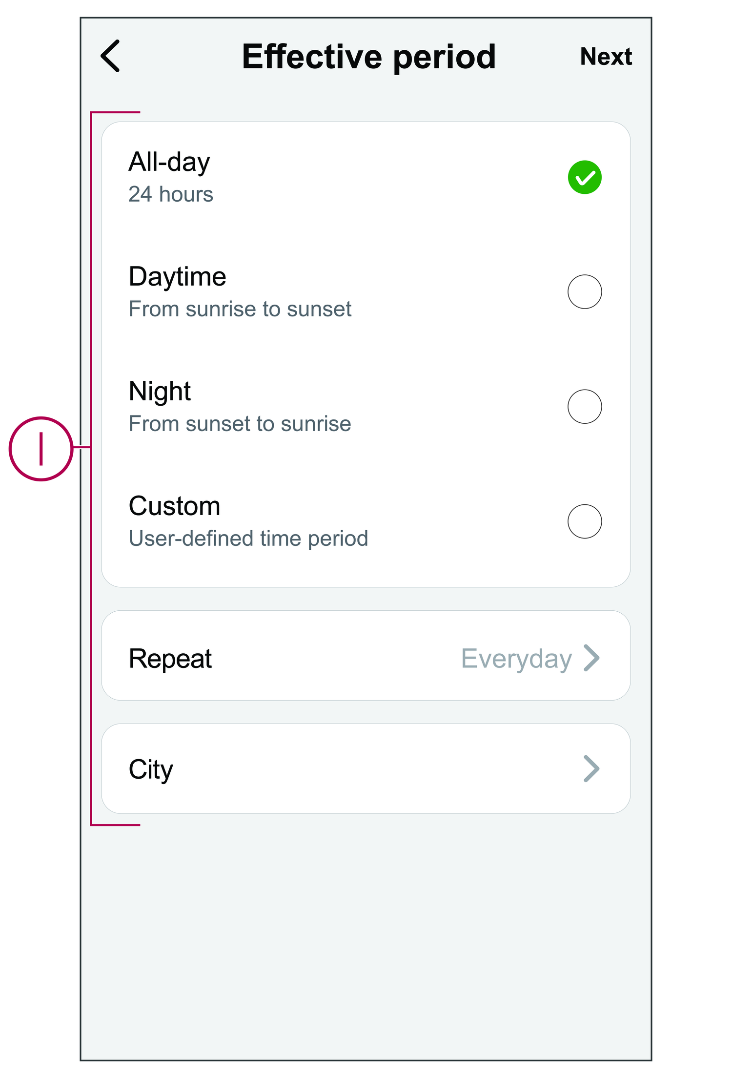 10. Tap on Effective period to set the time range for the automation. You can select any one of the following (I):