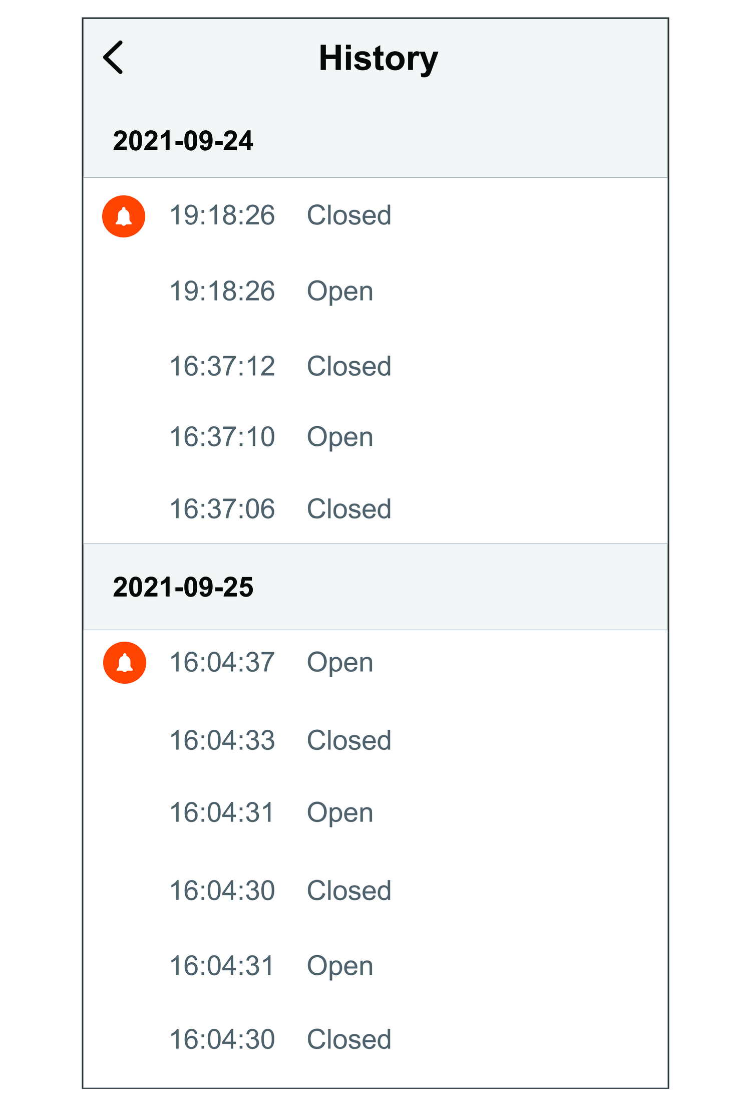 3. In the History page, you can see the date and time when the window/door was opened or closed.