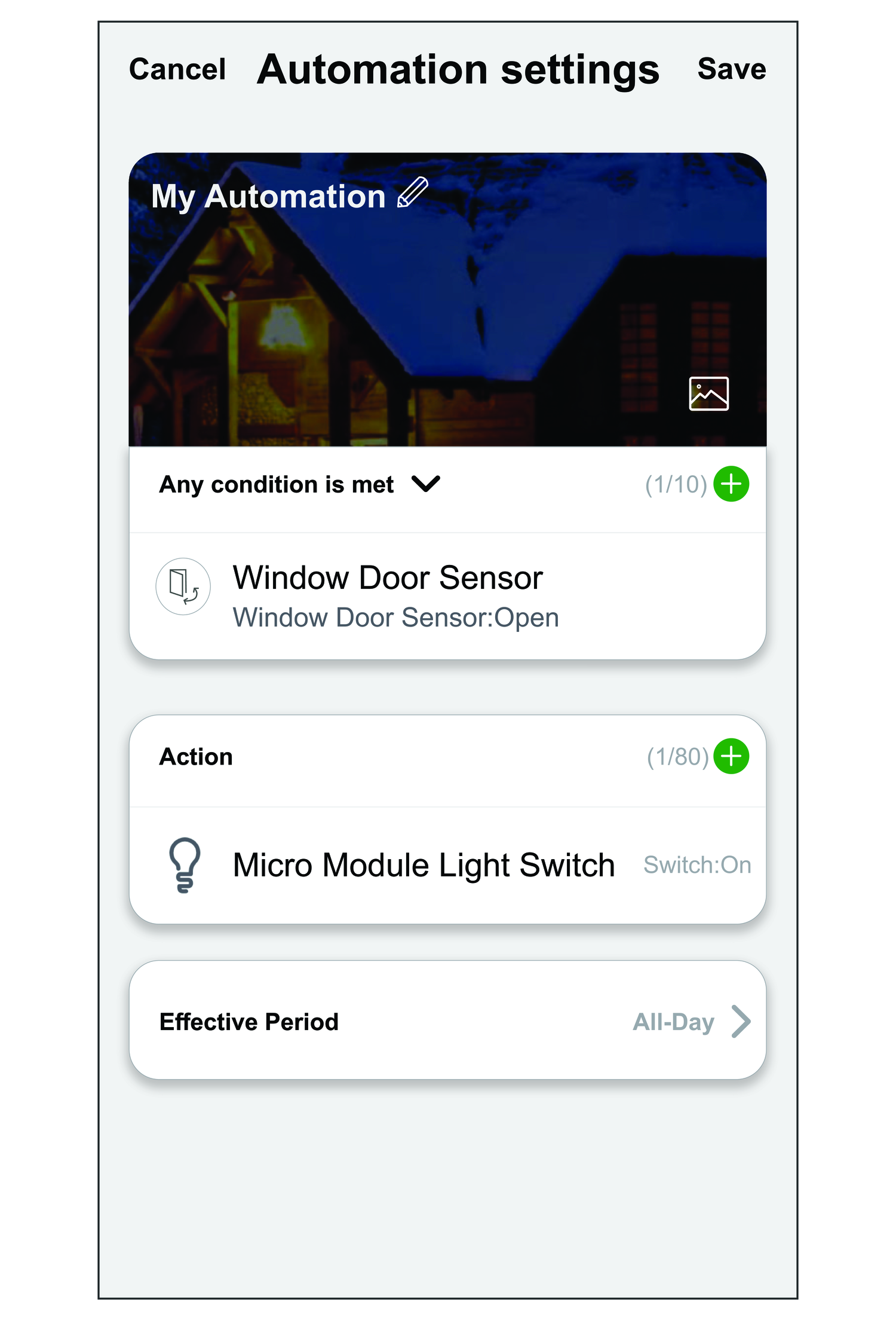 3. Tap Add Condition > When device status changes > Window/Door Sensor.