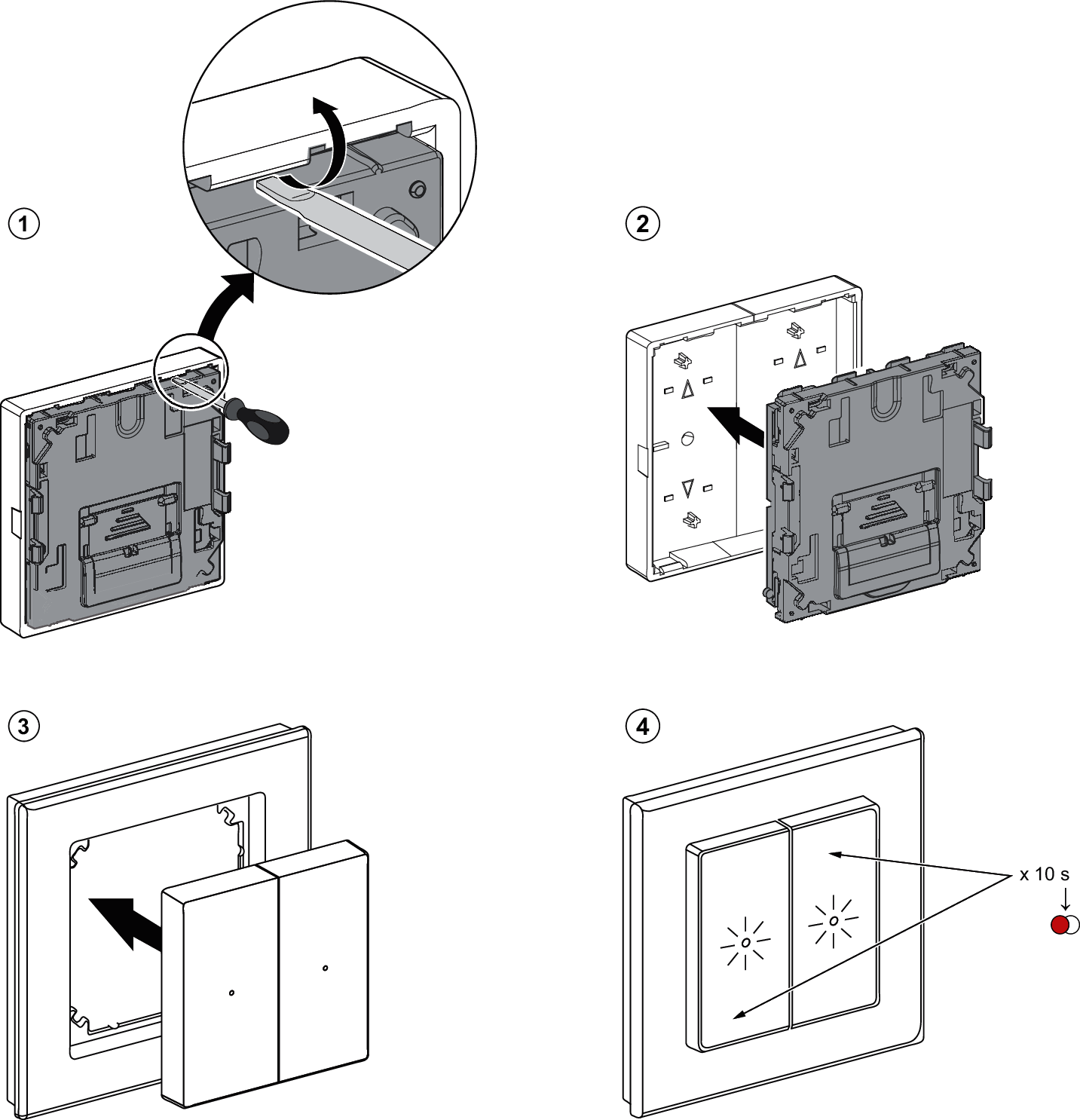 A piros LED az átkapcsolási folyamatot jelzi. A vezeték nélküli kapcsoló mostantól 2-csatornás üzemmódra vált.