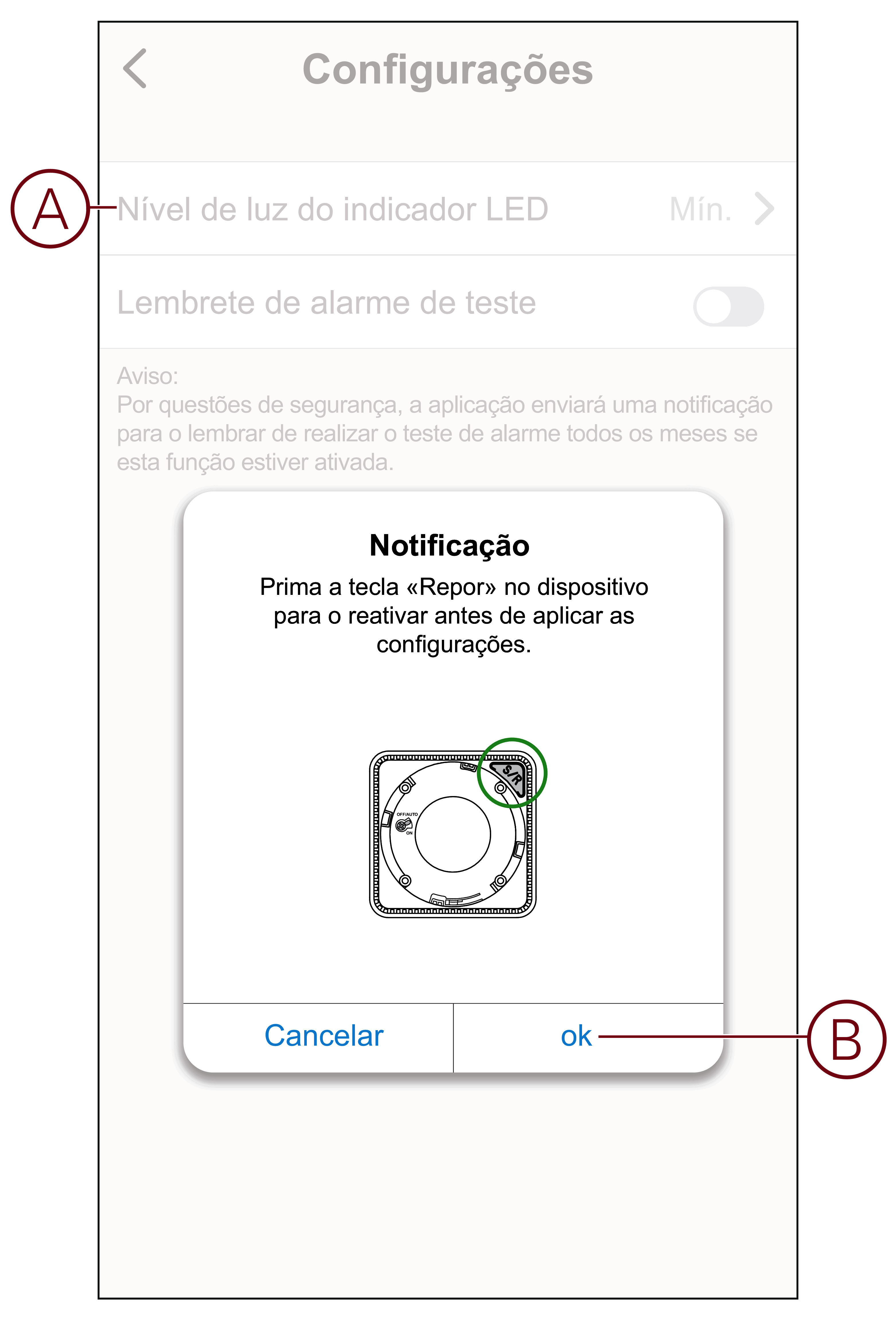 Siga as configurações mencionadas na notificação de pop-up e, a seguir, toque em Ok (B).